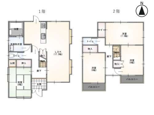 4LDKの間取りです。1階2階にトイレがあり、通勤通学前のトイレ渋滞が起こる心配は無用です。